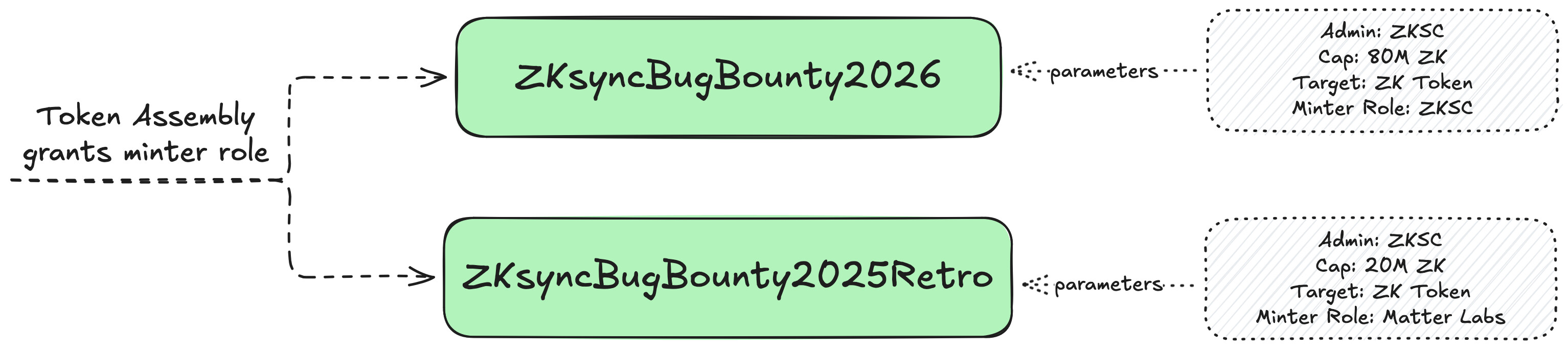 | Total ZK Requested | This proposal grants the minter role to two capped minters totaling 100M ZK to fund the ZKsync Immunefi Bug Bounty program (1) 2026: 80M ZK; and (2) 2025 Retro: 20M ZK |