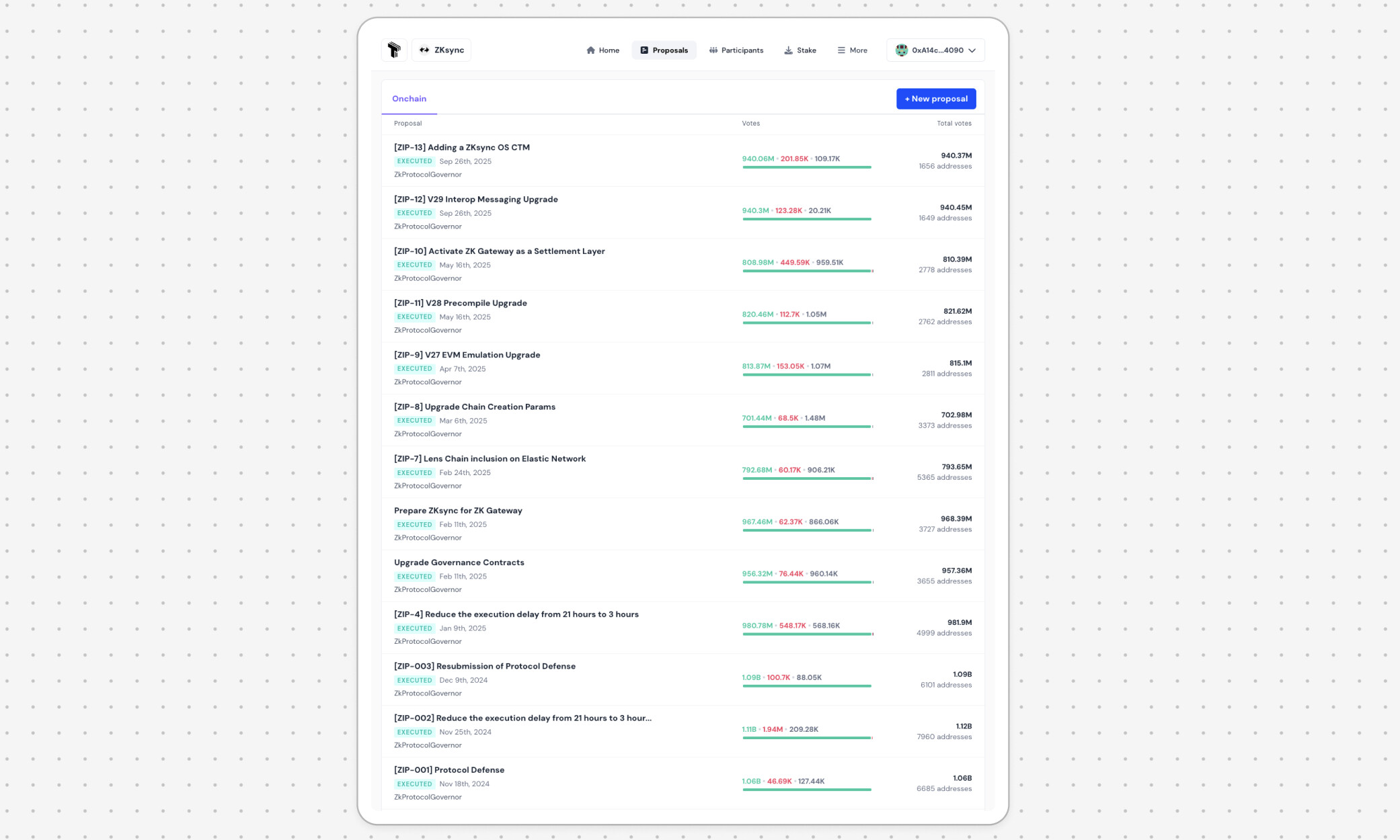 Governance tracking currently spans multiple steps—vote delay, voting period, time lock, L2 execution, Guardian veto period, Risk Review Period, L1 time lock, and finally execution on L1. Bringing visibility to the entire ZIP process would be beneficial for both ZKSC signers and Delegates/community observers.