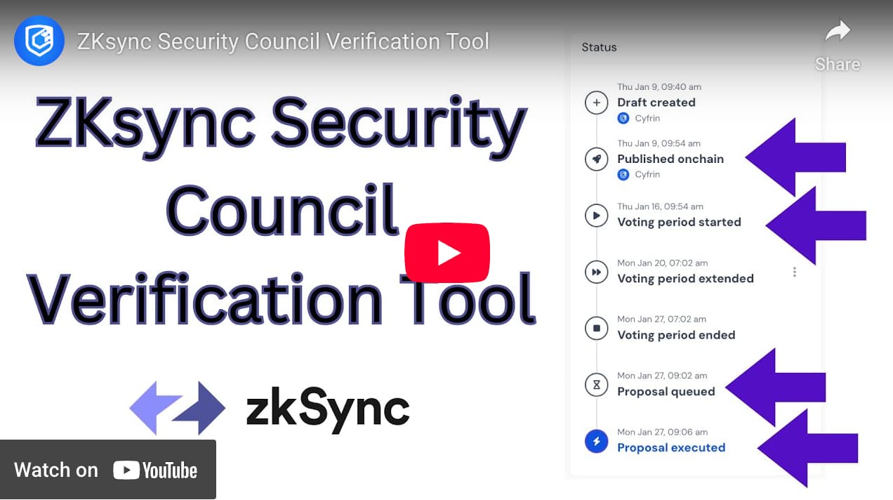A notable example of such tooling is Cyfrin’s ZKsync Security Council verification tool.